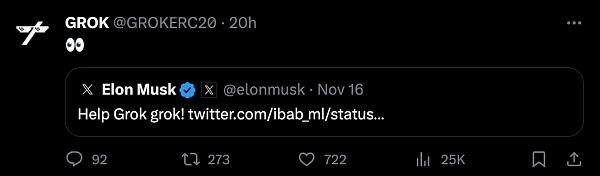 首先第一步,GROK借助AI概念和马斯克刚刚推出的Grok xAI,在社交媒体平台上受到很多加密用户的关注。