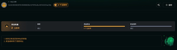 黑地址一般为混币器地址、被标记为诈骗/钓鱼的地址。如果某项目的相关地址涉及黑地址,用户应小心交互。