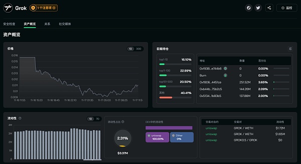识别和避免山寨币陷阱需要投资者保持警惕并进行充分的尽职调查,今天,我们将教大家通过 Beosin 旗下 EagleEye 平台识别类似的骗局陷阱,同时使用 Beosin KYT 反洗钱平台带你对 GROK 代币交易相关地址的资金流向进行分析。