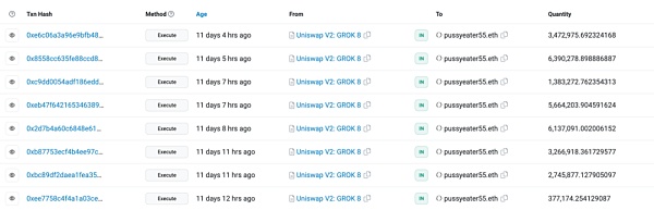 随后在开盘后的1分钟内,多个风险地址大量购买GROK代币。