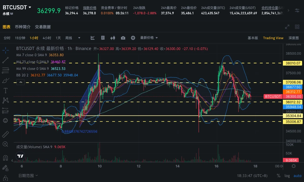 数字货币方面, 实际波动率居高不下 ,BTC 在触碰 38000 的高点过后迅速回吐几乎全部涨幅,在近期的 pivot point(约 35300 美元)上方发生反弹后回到 36000 美元左右。ETH 则是再度走下 2000 关口在 1960 美元附近整盘。