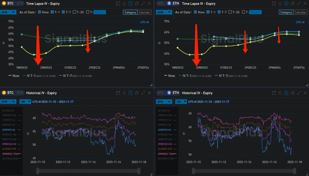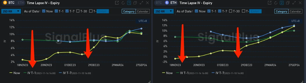 SignalPlus波动率专栏(20231117):币价IV维持正相关走势同步下跌,Vol Skew大幅回撤