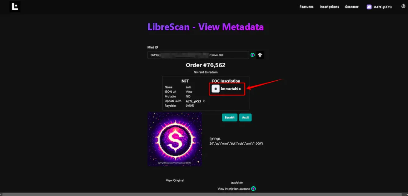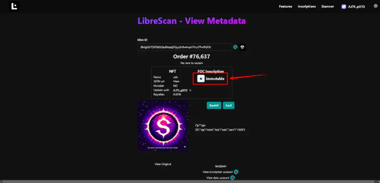 经国外一名老哥研究了下,把代币文本刻入到 NFT 铭文内,于是诞生了 $sols!当时引发全网 fomo 铸造,一度把 libreplex 平台网站冲崩。目前 $sols 以及全部铸造完毕。