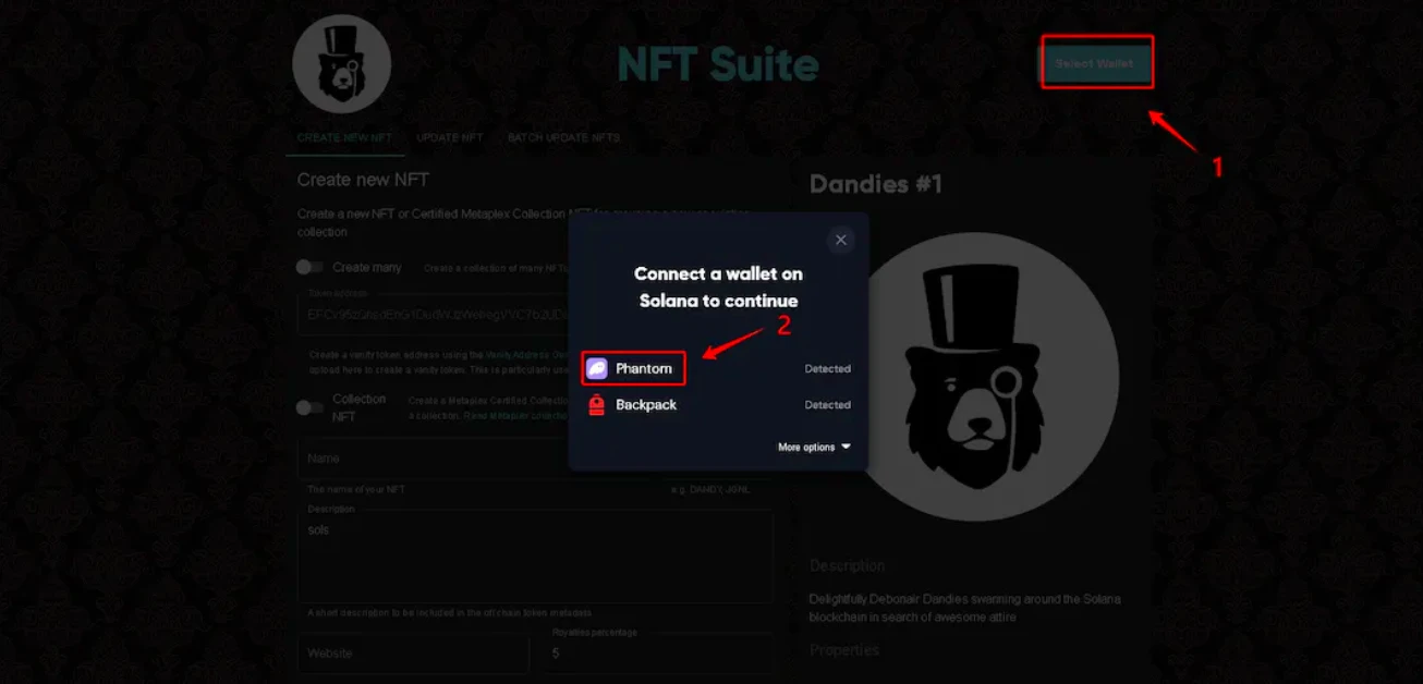 3、打开 dandies 官网,并点击右上角链接钱包