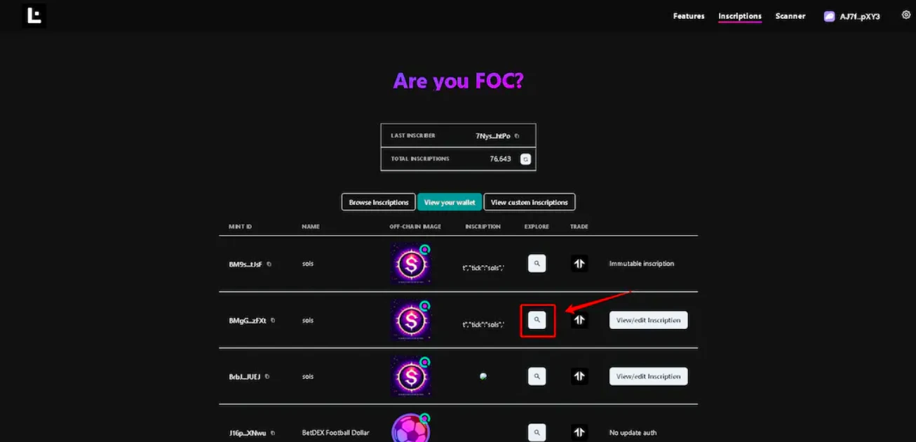 1、打开 libreplex 官网,并找到需要修改的铭文,并点击后面的放大镜