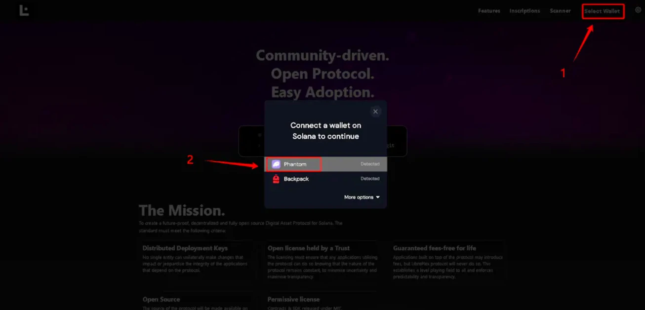 1、打开 libreplex 官网,并点击右上角链接下钱包 LibrePlex