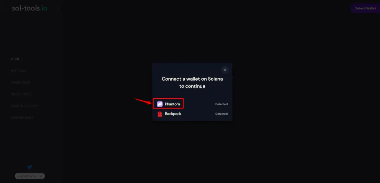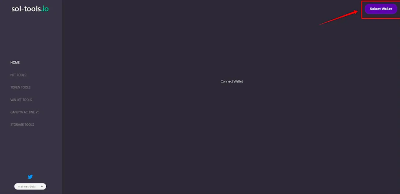 1、打开部署网页,并点击右上角的 Select Wallet