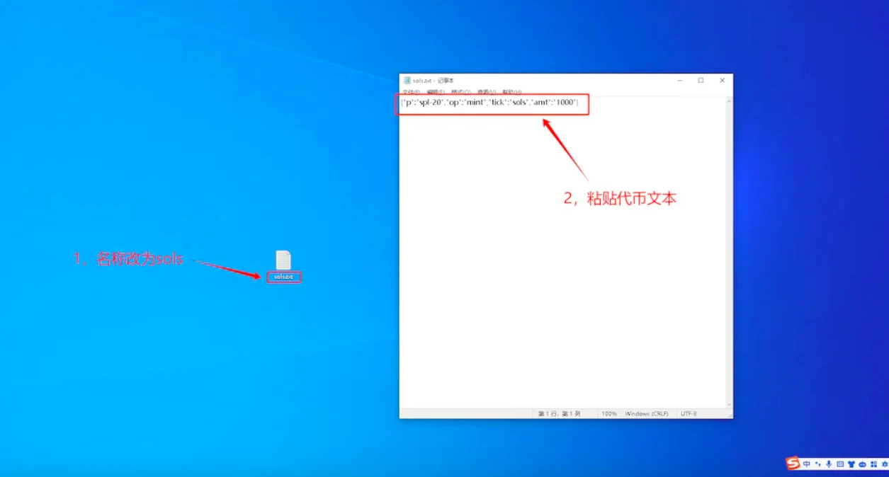 5、把文本名称改为 sols 方便记,并把文本上面代币的文本粘贴进去