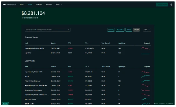 任何人都可以存入资金到金库中,以赚取利润的一部分。作为交换,金库所有者将获得总利润的 10% 。金库可以由个人交易者管理,或由做市商自动化管理。当然,所有策略都有其自身的风险,用户应在存款前评估金库的风险和业绩历史。