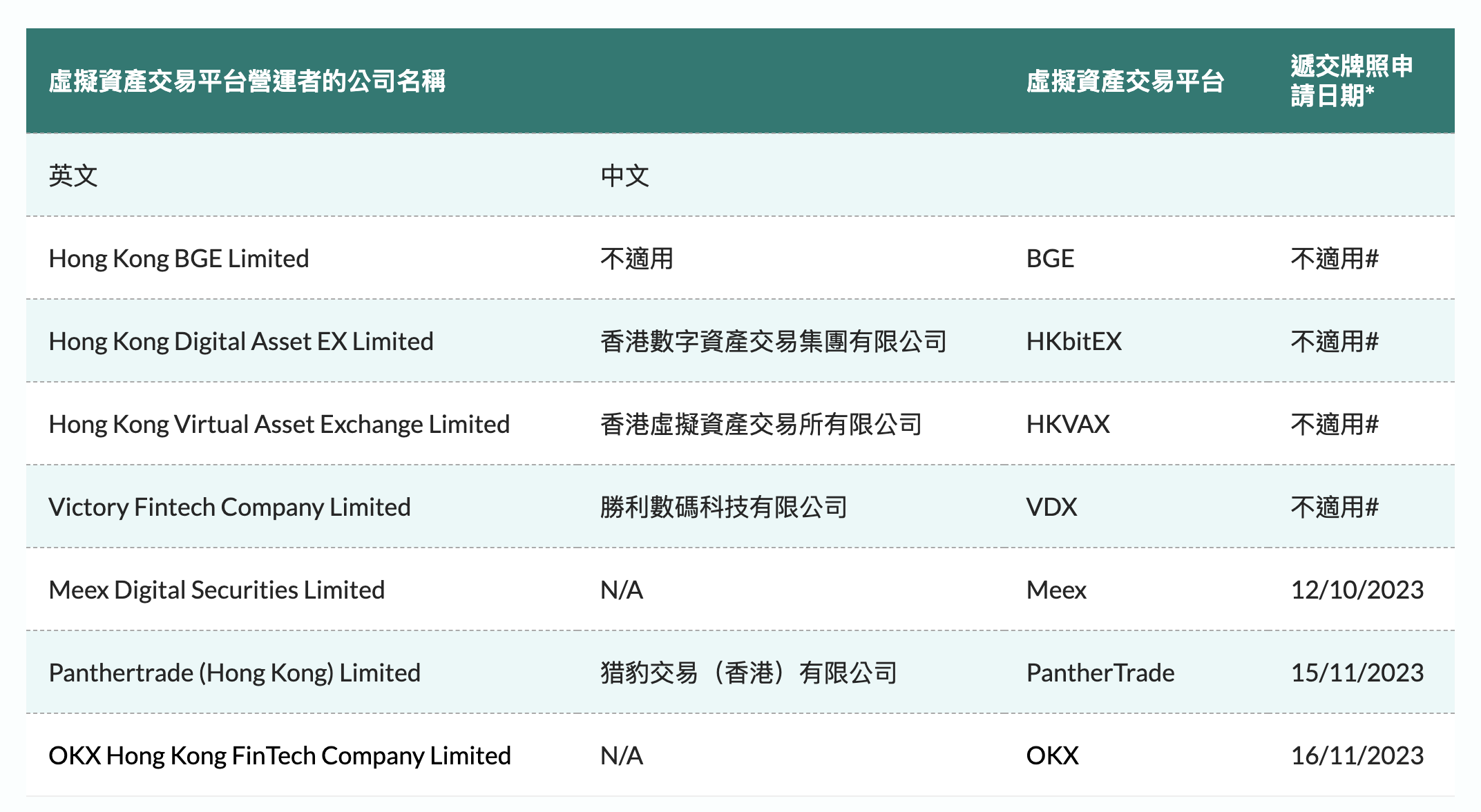 在此之前,另外两家虚拟资产交易平台Meex和PantherTrade(富途旗下虚拟资产交易平台)分别在10月12日和11月15日递交牌照申请。