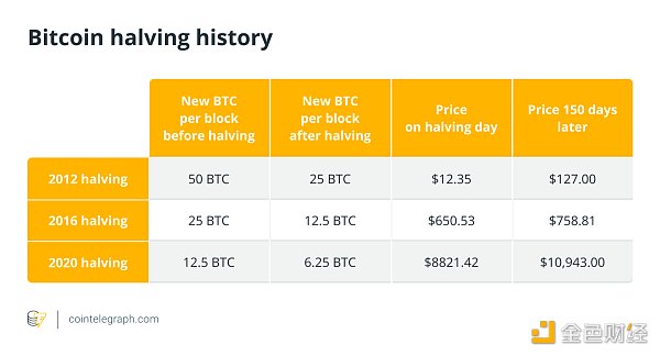 b.将发生 2023 年 4 月的下一次减半的影响:从历史上看,比特币减半事件与价格大幅上涨相关,如下图所示(由 Cointeleprah 提供)。