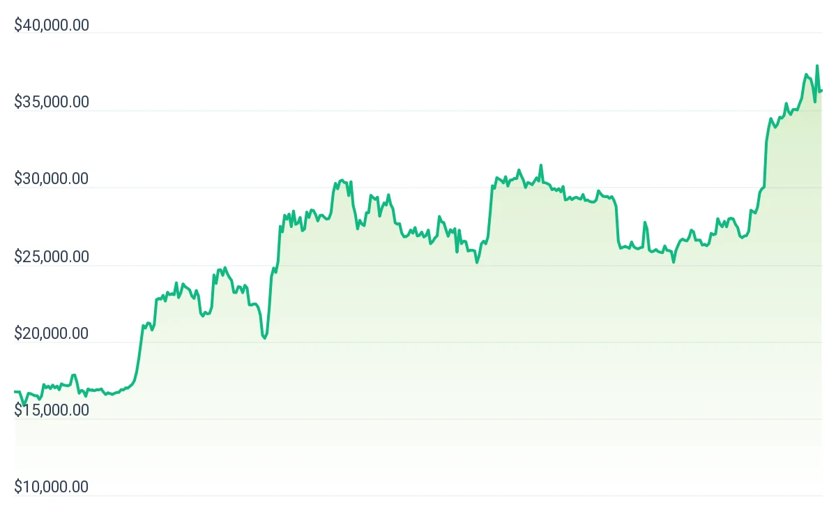 然而,这次的拒绝却丝毫没有打击市场积极性,BTC 的价格与 16 号当日下午上涨了超过 5 %,达到了 37, 500 美元。
