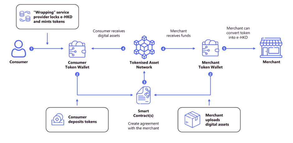 Mastercard 在 E-HKD 的先导计划中,将数字港元铸造,分发到代币化网络(tokenised network)的消费和兑换场景中,购买实物资产和实物对应 nft 证书等虚拟物品 取得了成功。数字港元对 Web3 的世界 以“wrapping”的形式在网络中流通,保持数字港元的价值, 智能合约确保交易程序可以正常运行。