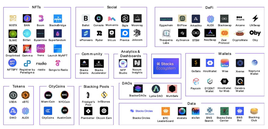 构建了原生 BTC 生态:Stacks 为比特币构建了原生的生态系统。通过找到一种直接在比特币上执行操作的方法,Stacks 实现了可扩展的交易和通用智能合约。这个原生 BTC 生态使得比特币成为整个生态系统的核心资产,进一步推动了比特币的广泛应用和发展。比特币持有者可以参与各种 DeFi 活动、治理和决策,并享受更多的流动性和用途选择。