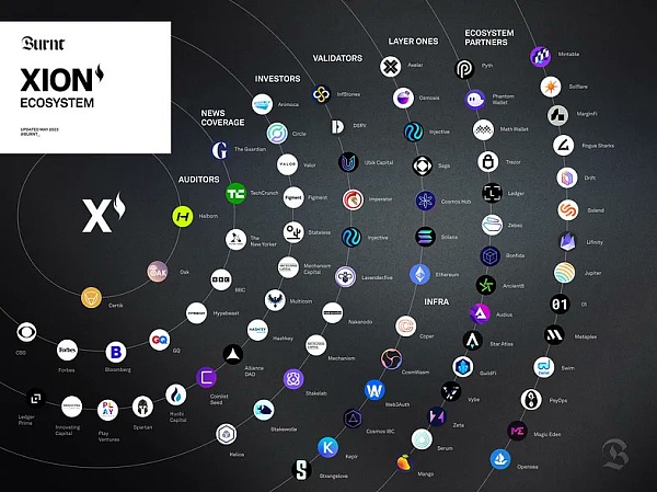 鉴于主流世界对加密货币普遍持怀疑态度,建立信任是吸引广泛受众的最重要因素之一。这也是 XION 与 Web2、Web3 领域的诸多知名公司进行战略合作的原因。例如,Animoca 和 Circle Ventures 等 Web3 知名公司/投资者投资了 XION,与 Web2 巨头 Checkout.com、Stytch 和 Stripe 等公司合作。