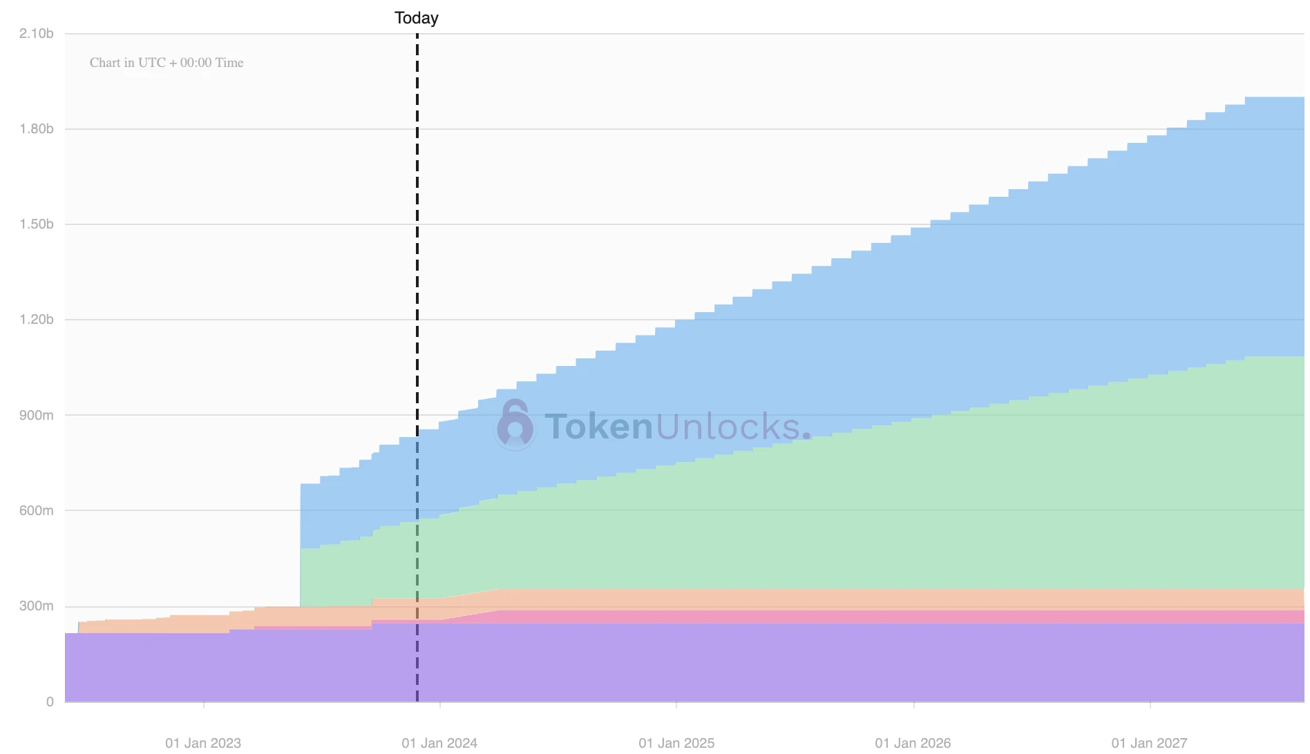 LOOKS 的解锁曲线较为有趣,每季度均会迎来一次大额解锁,而在其余时间则小额线性解锁。