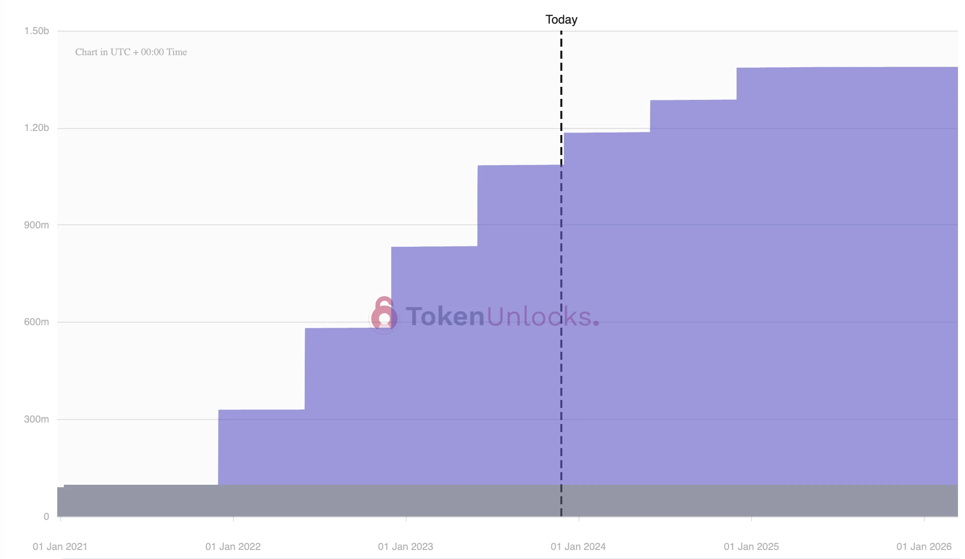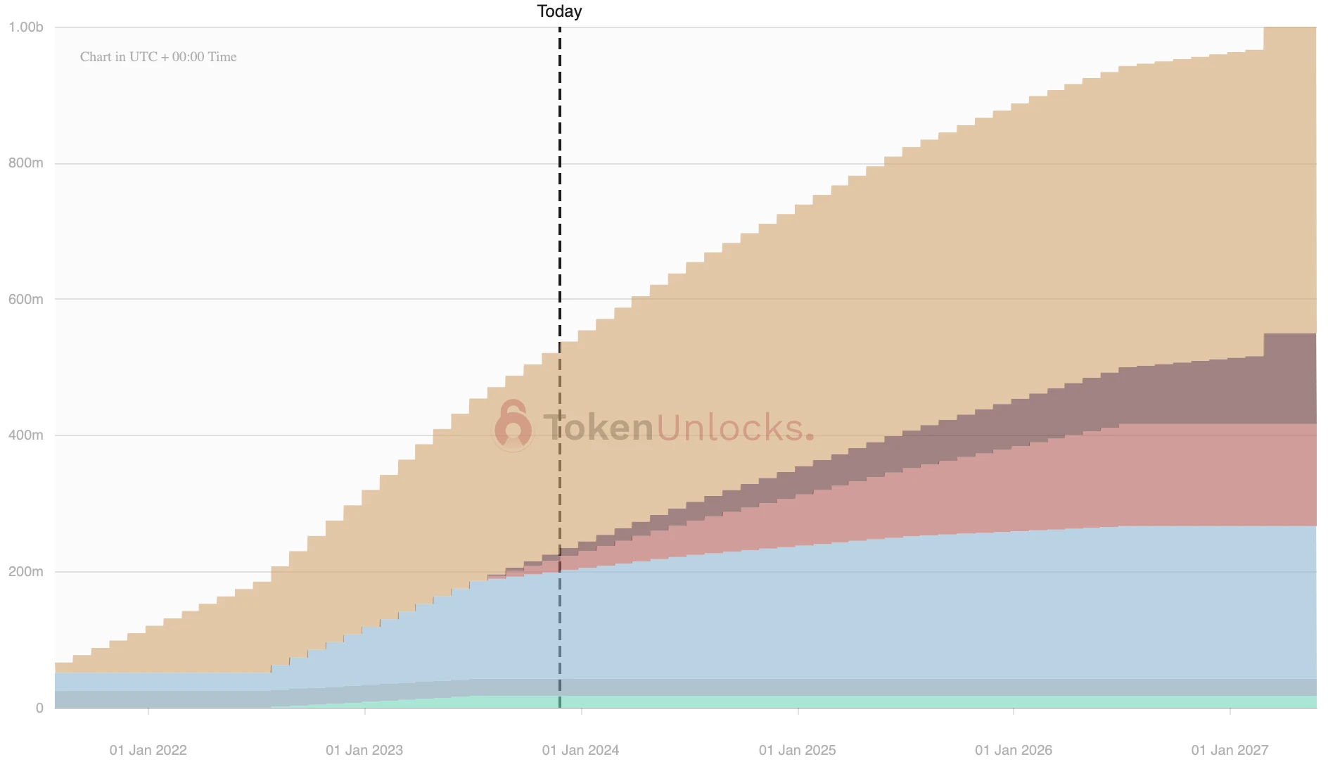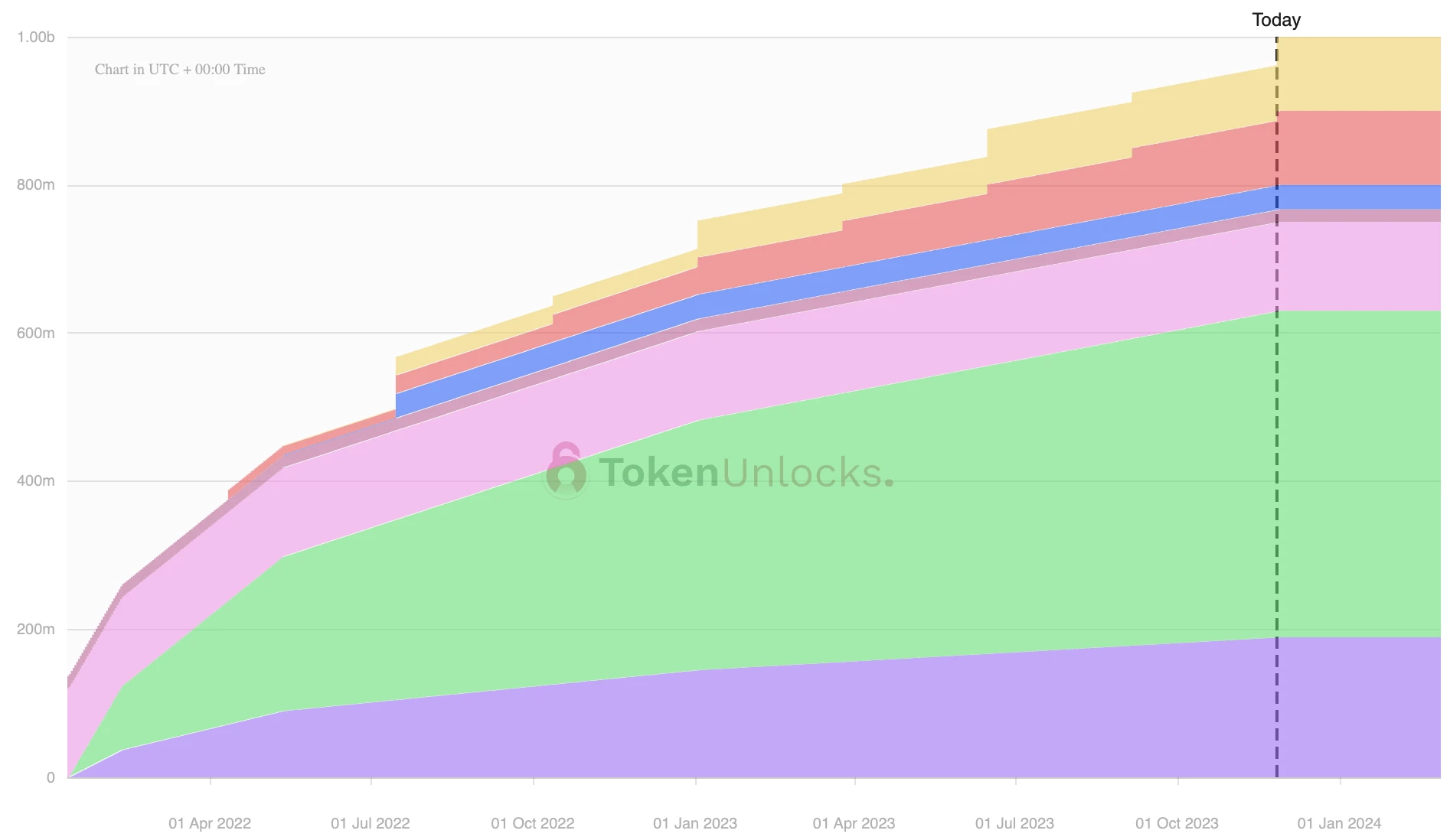 其解锁信息表明,本次解锁代币中超过一半(976 万枚)均归属于投资者,其余则为社区、金库、顾问。