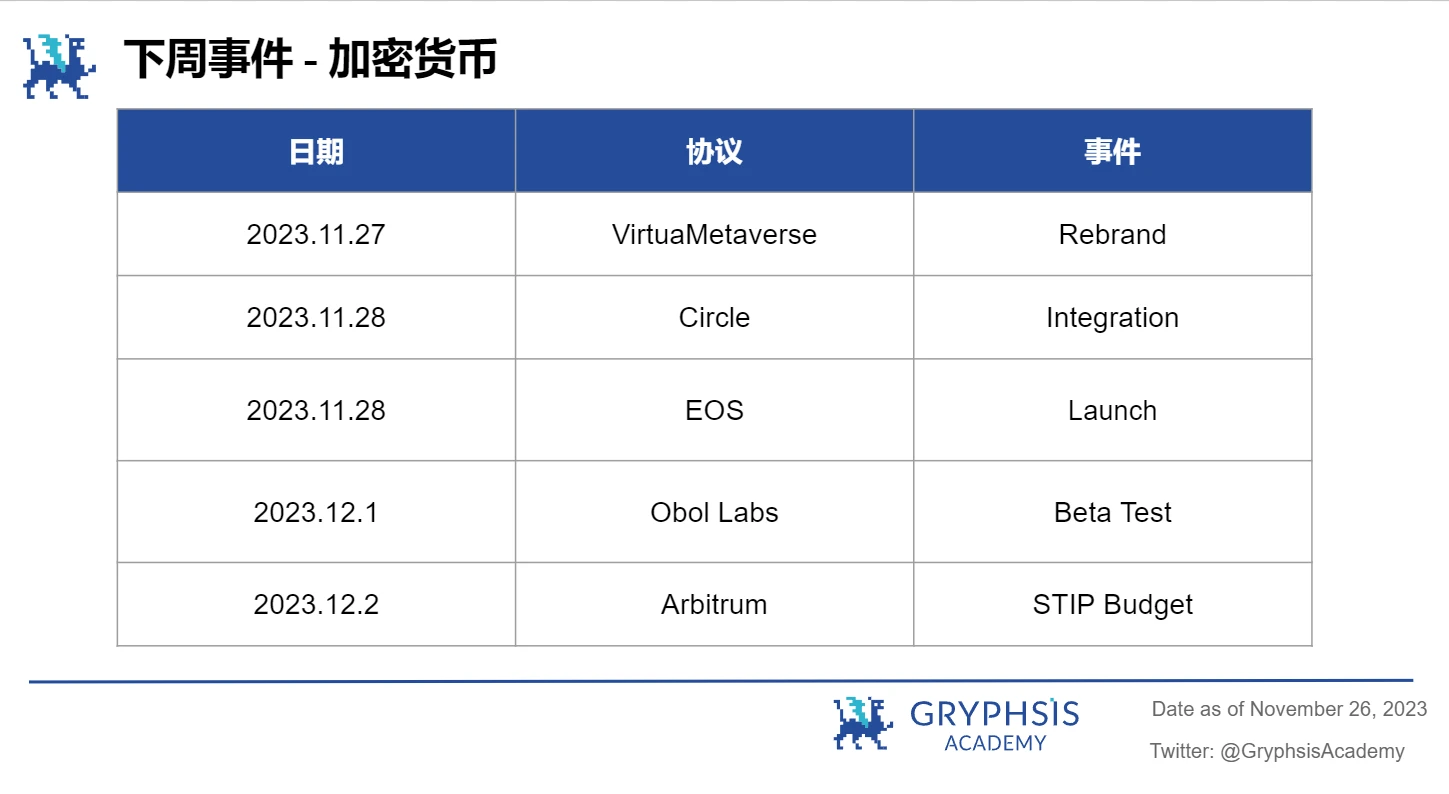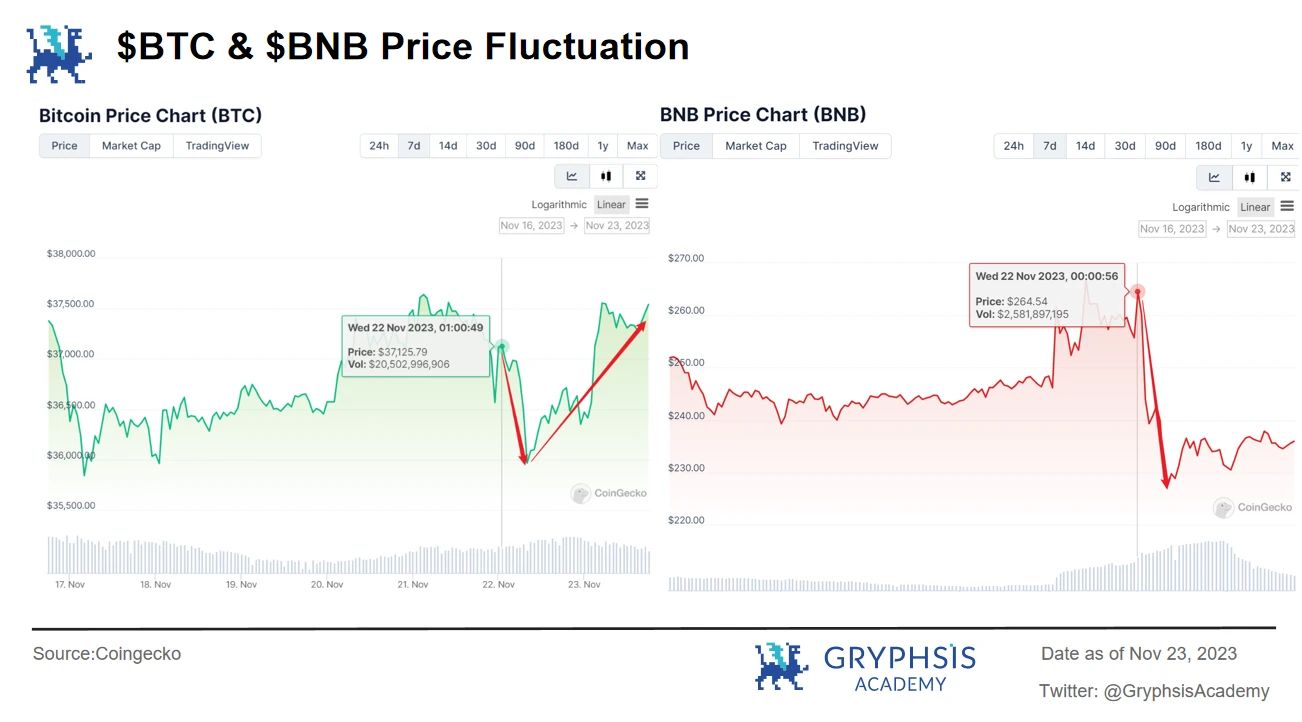 Gryphsis 加密货币周报: Binance被罚43亿美金,CEO赵长鹏离职,BTC现货ETF通过预期上涨