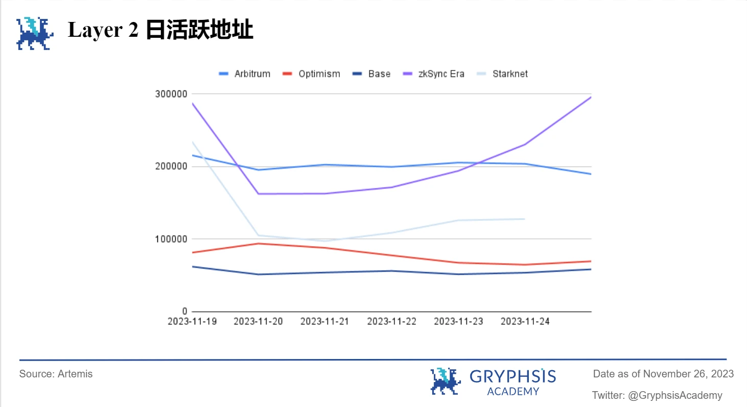 上周,Layer 2 整体均呈正增长,其中 Optimism 本周突破了 1 B 的 TVL。zkSync Era 增长最为明显,为 39.83% 。像 ZKSwap 、 Steer Protocol 和 Popcorn 这些协议展示出了值得注意的 TVL 增长比例。