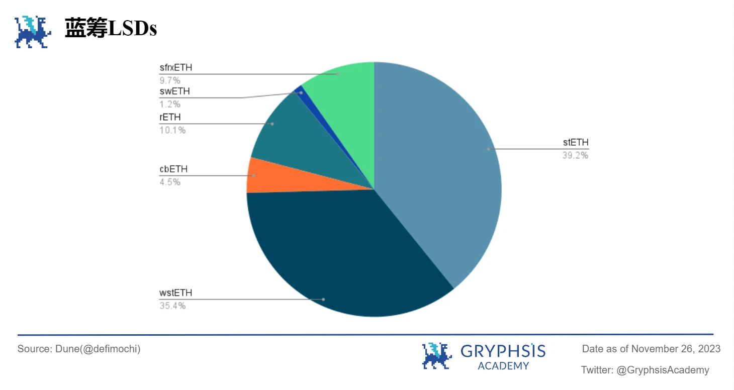 在 LSD 领域,以太坊质押保持细微增长,但质押率略有下降,但是幅度不大。就市场份额而言,s 所有蓝筹 LSD 均呈现增长态势,其中 swETH 在本周增长明显,为 16.01% 。