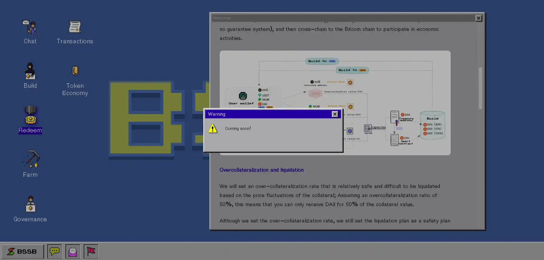 用户可以在「Farm(农场)」中质押 $DAII 以获得 $BSSB。需要注意的是,Farm 只在比特币链上运行,所以当用户的 $DAII 在 EVM 链上被换成 USDT 时,还需要使用 MultiBit 在链上质押 $DAII(ERC 20)。