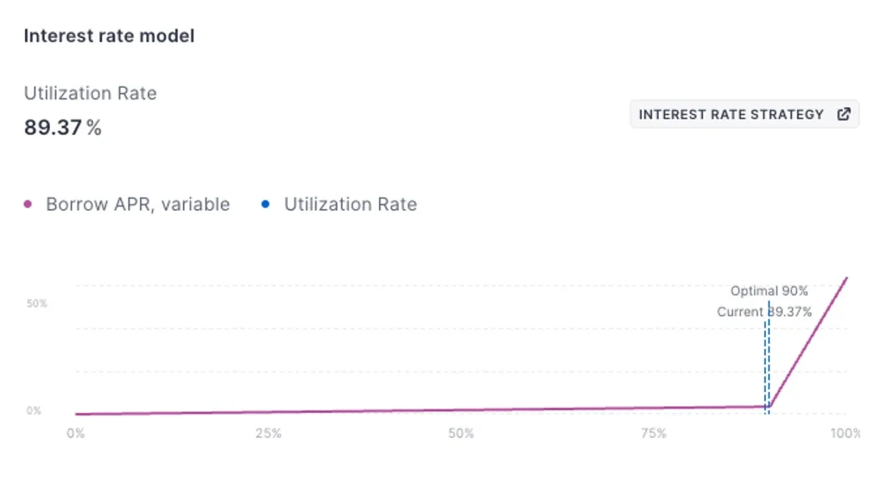 当利率太高时,大量贷款供应就会闲置。 APY 利差(1- 利用率)随着利率的增加而增加。这还是在平台收取费用之前。