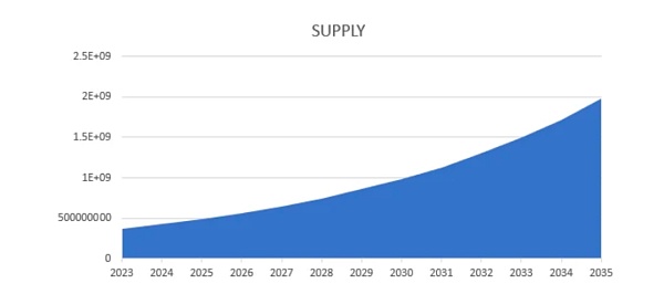 高收益率就意味着高通胀率 ,ATOM 一路从 2019 年的 2 亿枚左右一路增发至如今的 3.7 亿枚,按当前的市价也意味着超 15 亿美元的抛压。更可怖的是如果一直持续下去,2035 年甚至最高将通胀至 20 亿枚,相比今天 5 倍有余。