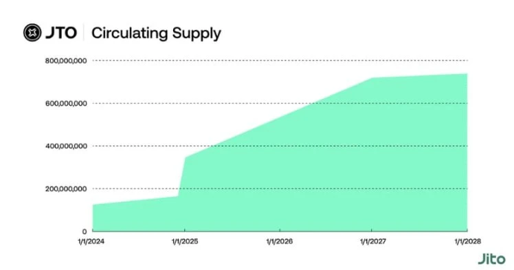 下图显示了 JTO 代币流通供应量变化情况:
