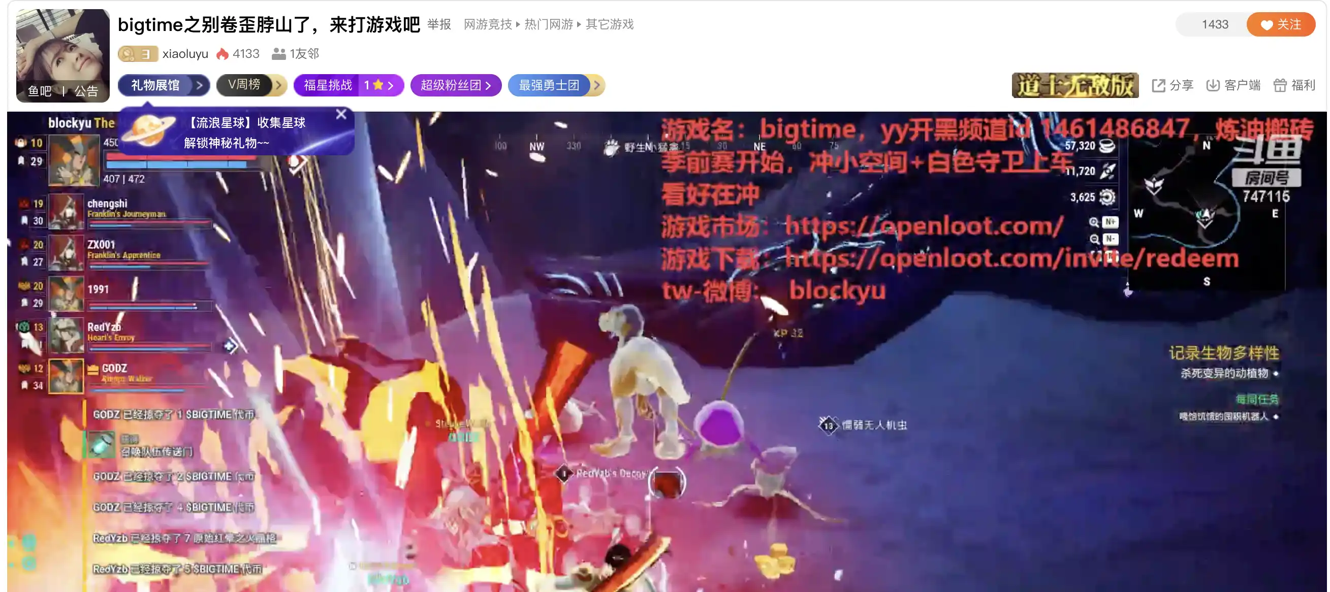 斗鱼平台主播用 BigTime 做游戏直播,项目的出圈程度可见一斑;图源来自网络