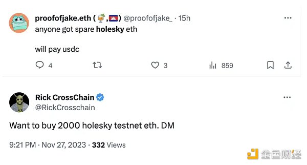 据社区反馈,Sky Strife 的测试代币一个只需 0.3RMB,但现在一张 pass 卡差不多要 3000 人民币,用户直言道「牛市测试网也没见过这样的」,社区里也出现很多人场外收 holesky 的 ETH 以进行游戏试玩。