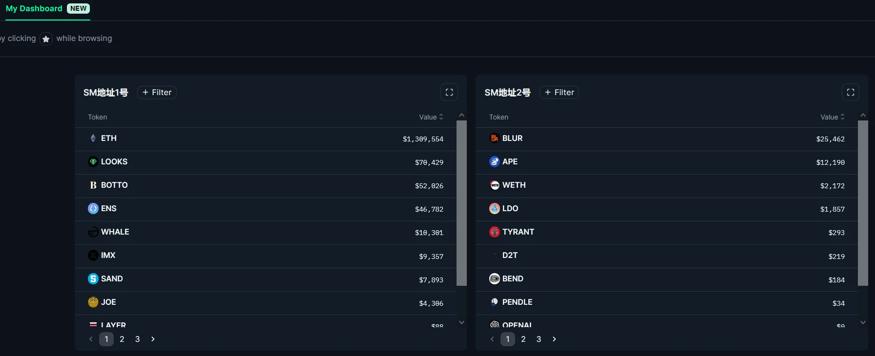 Nansen 2 新增了“My Dashboard”模块,支持用户将每个模块下的细分子类添加至 Dashboard 以便捷查看。