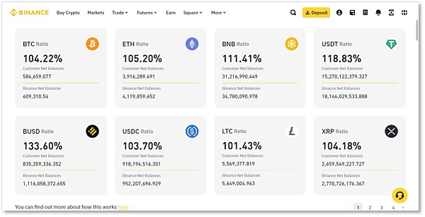 币安的储备证明系统(POR)显示其32种资产的储备比例均超过100%