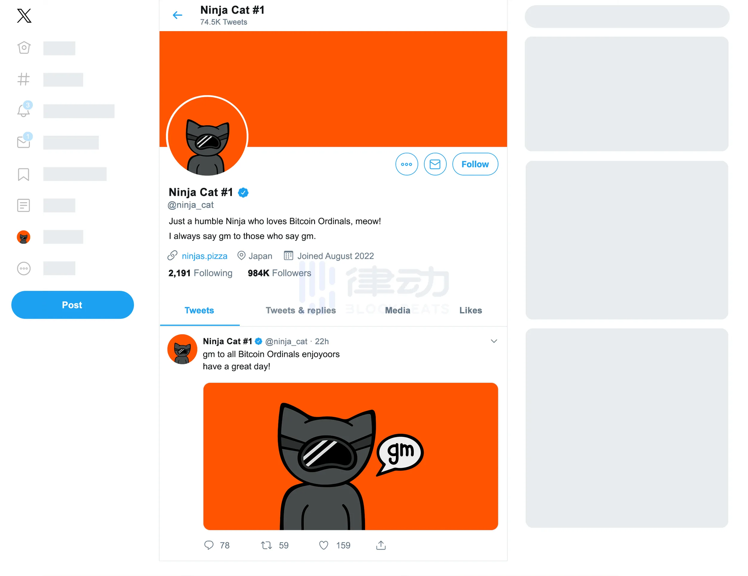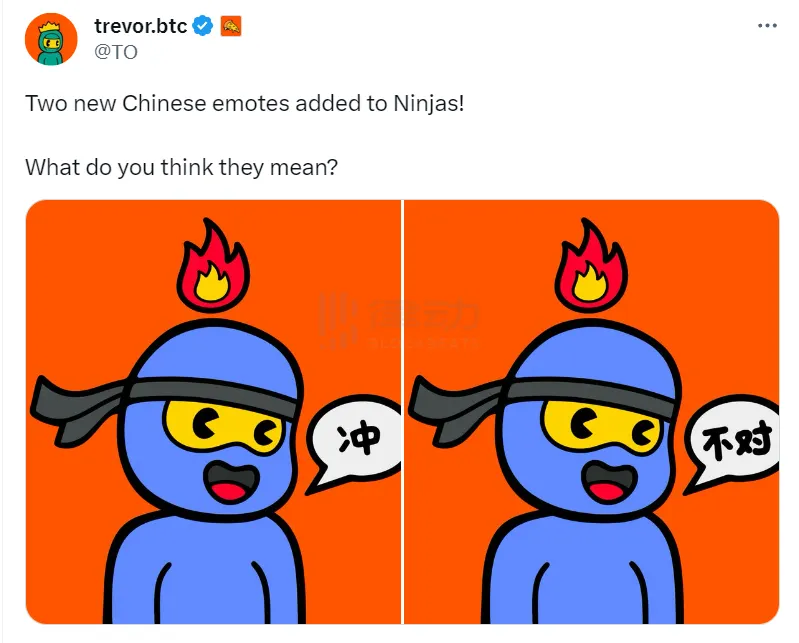 - 中文圈的比特币 NFT KOL/Builder 换了 Pizza Ninjas 作为 Twitter 头像,比如 OrdzGame 的创始人 z 3 th.eth、在 BRC-20 早期就和 domo 有过深度交流的 shep.eth 等等