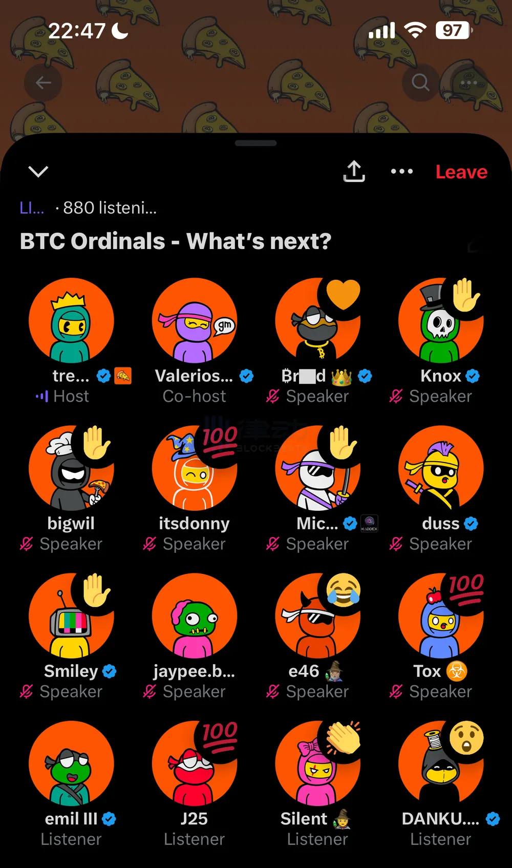 Pizza Ninjas 头像在 Twitter Space 中使用冒泡表情的效果