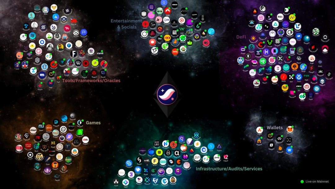 尽管在 Layer 2 中 Starknet 的锁仓额并不亮眼,甚至于在今年 8 月份以来停滞不前,但其生态系统却在稳步扩张。下图是 Starknet 在本月下旬发布的生态图景。