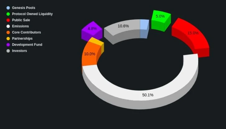 22.5% 的创世部分中, 15% 用于公开发售, 5% 用于初始流动性, 2.5% 进入创世池作为 xSITH 在 6 个月内线性分配。