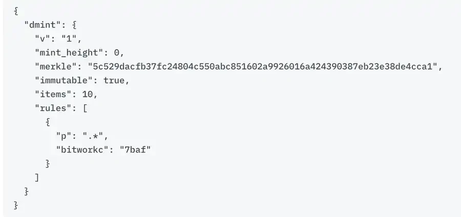 更进一步,在同一个 NFT 系列中,可以对不同的 NFT 设定不同的 Bitwork 难度(精确到每一个),比如: