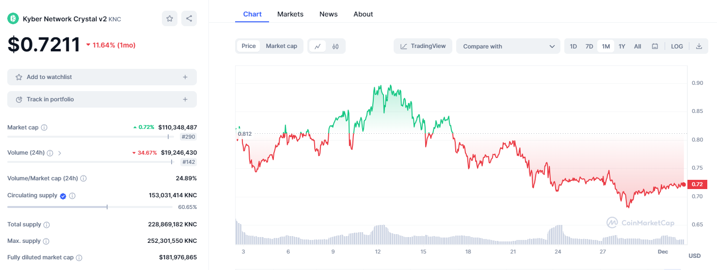 目前,黑客尚未有进一步的反应,而截止发稿前,KNC 代币价格暂报 0.721 美元,过去七天内下跌 2.7% ,振幅 10.8% 。