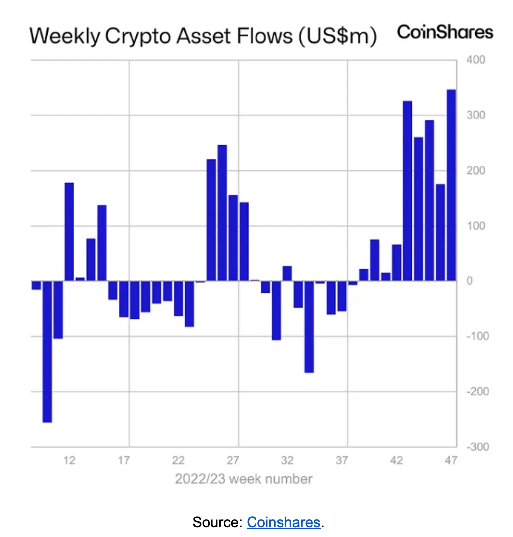 数字资产投资产品获得了 3.46 亿美元的流入。