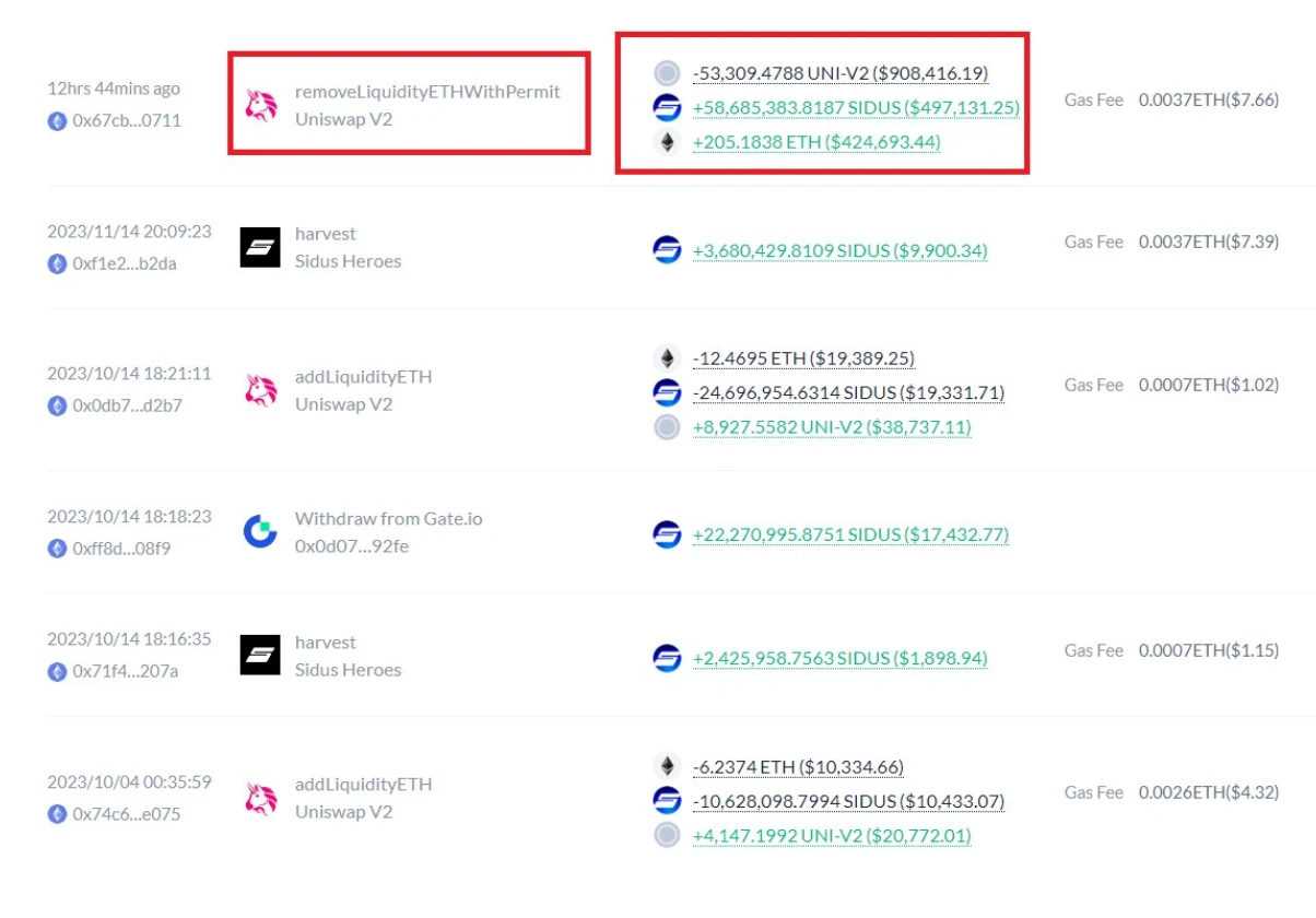 最近,一位鲸鱼(0 x d5)移除了$ Sidus 的 35% 链上流动性。 请查看他们的 Debank 资料 。