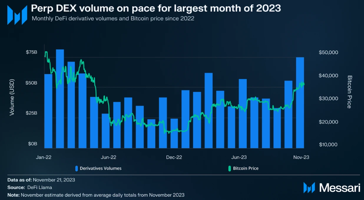 衍生品市场的活动数量显著增加,DEX 交易额有望超过 75 亿美元,创下自 2022 年 2 月以来的最高月度总额。DYdX 在永续合约生态系统中崭露头角。目前,它以每日交易额约 10 亿美元的强劲表现稳固地占据一席之地。