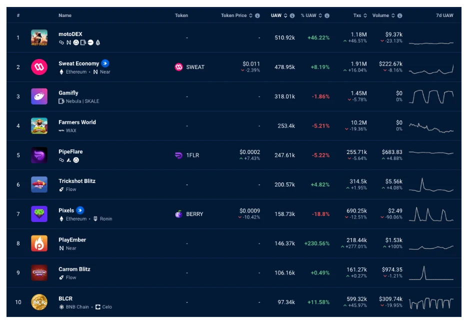 过去 7 天的前 10 名 NFT 游戏 Source: DappRadar.