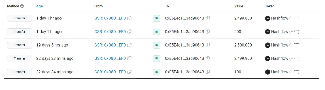 GSR 进行了重要收购,获取了价值 250 万美元的$HFT,占流通供应量的近 5% ,并将其存入新创建的地址。