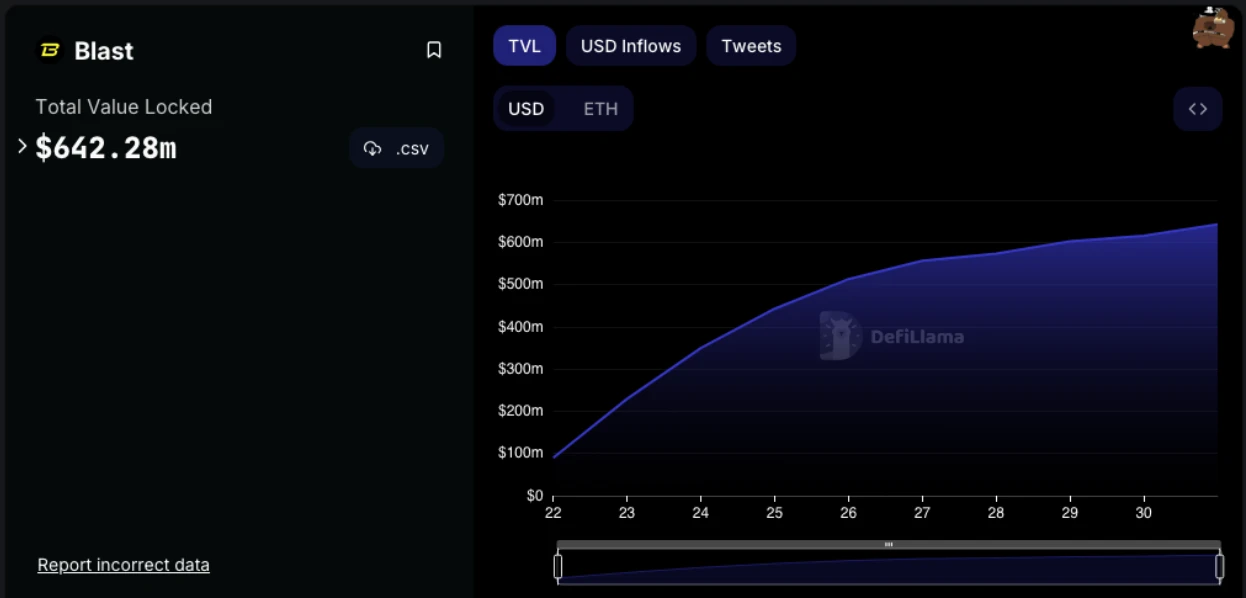 基于以太坊的二级网络 Blast 在推出 10 天内就吸引了 6.21 亿美元的锁仓价值。