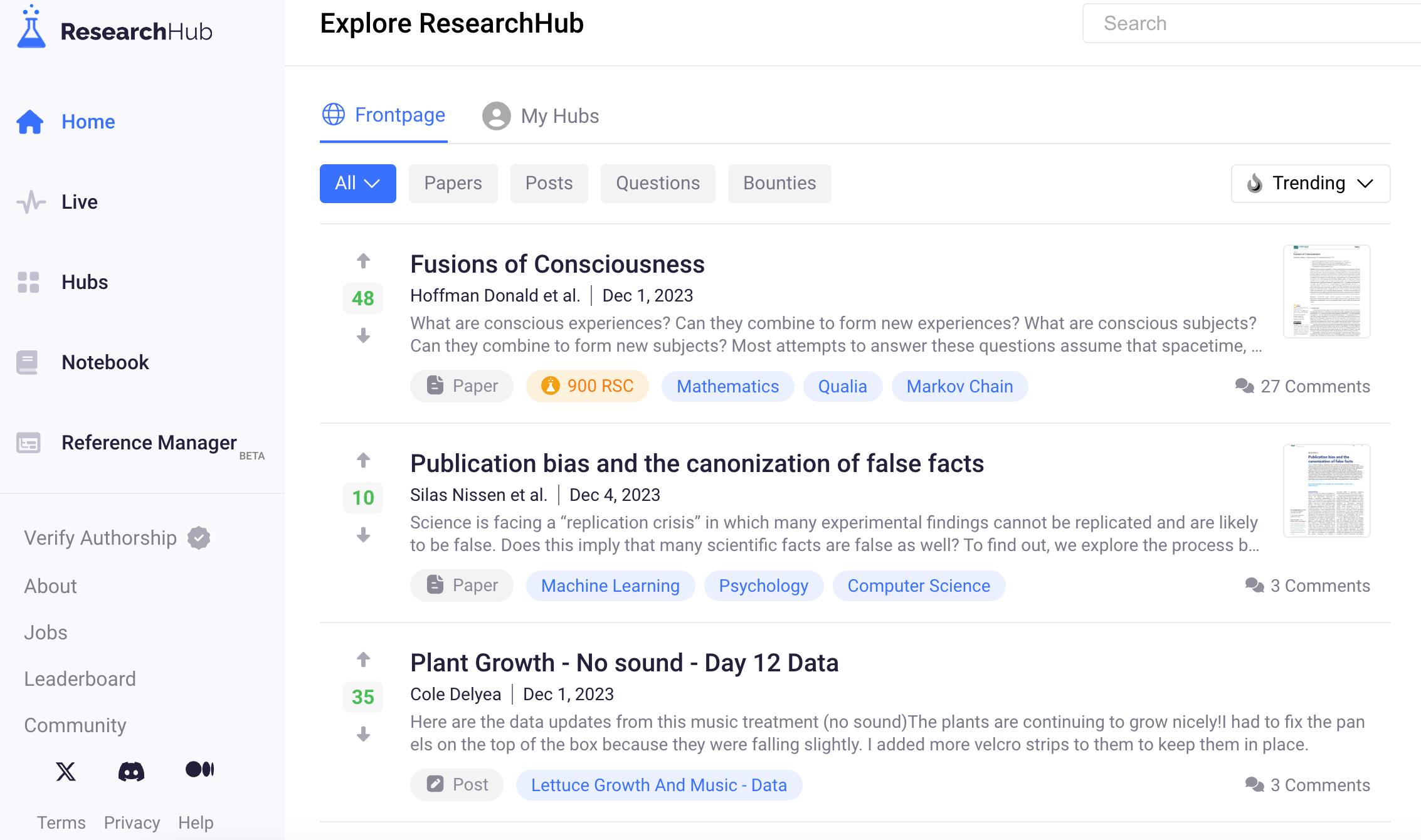 ResearchHub 是一个支持科学研究公开发表和讨论的工具,旨在打破传统科学资助和出版的激励低下的局面。