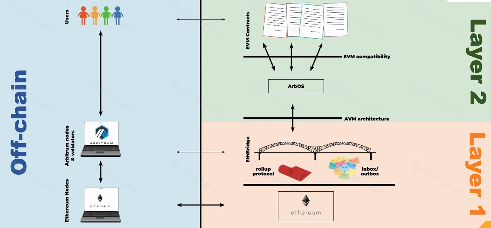 AVM 结构保证通过以太坊上的桥接智能合约输出的内容能够被 Arbitrum 识别的虚拟机程式;