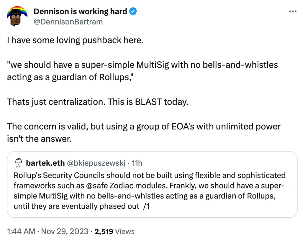 确实,当前所有 Rollup 都具有多重签名,有权升级底层智能合约,但正如我们将看到的,它是一种保护用户资金的保守主义机制,并且是更广泛的系统架构的一部分。