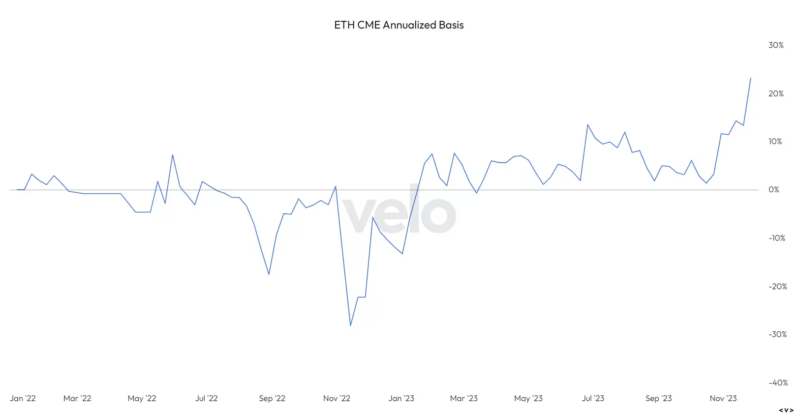 有分析师认为,随着资金现在以更快速度流入以太坊期货(相对于比特币期货),这种差距可能会缩小。据Velo Data数据,过去五天,CME现金结算以太坊期货合约未平仓头寸的美元价值增长了30%,达到7.11亿美元,超过比特币期货合约未平仓头寸19%的增幅(49亿美元)。