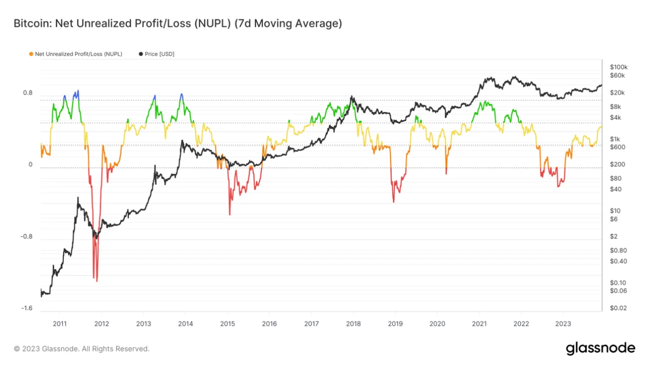 如果稍微再往远处展望一些,当 1 月 ETF 结果出现,市场回调兑现,会缓慢攀升到减半后,在 6 月才会迎来第二次系统性的调整,基于我们认为 ETF 一定会通过的前提,那么大概率 6 月是最终通过节点,那么 6 月还会有最后一次牛市启动前的上车机会。不过 6 月太遥远, 我们还是更需要重视 12 月底本轮中线行情加速冲顶后的回调窗口,也是最重要的布局窗口。