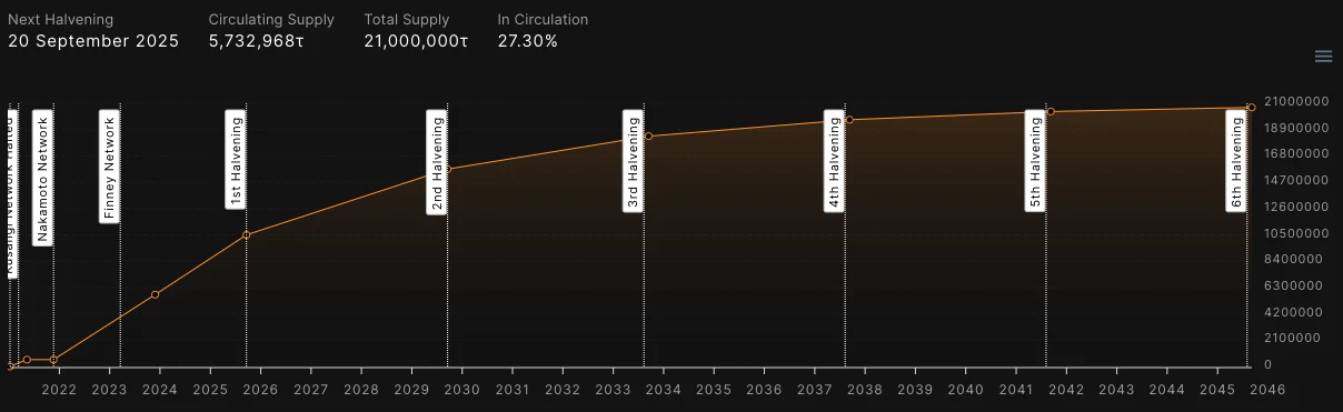 $TAO 作为 Bittensor 的原生代币,作用包括创建子网,在子网中注册,支付服务,向验证者质押等等,在生态系统中发挥着举足轻重的作用。同时由于 Bittensor 项目方致敬 BTC 精神的做法,$TAO 选择了 公平启动 ,即所有代币都会通过在网络中做出贡献产生。目前,$TAO 的每日产出约为 7200 个,平均分配给矿工和验证者。自项目启动始已经产出的总量约为 2100 万的约 26.3% ,其中 87.21% 的代币被用于质押与验证。同时项目设计了约 4 年一次的产量减半(和 BTC 相同),最近的一次会发生在 2025 年 9 月 20 日,这也将是驱动价格上涨的一大动力。